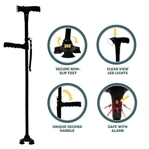 Canne De Marche Pliante Autonome Avec 6 Lampes Del
