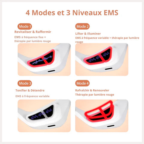 Modes et Intensités Personnalisables : Quatre modes de soins oculaires et trois niveaux d'intensité EMS permettent de personnaliser l’expérience de massage en fonction de vos besoins.