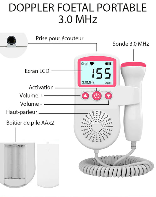 Ce Doppler fœtal portable vous aide à surveiller le rythme cardiaque de votre bébé dès 12 semaines de grossesse. L'appareil est équipé d'un écran LCD pour vous permettre de suivre en temps réel le résultat. Vous pouvez écouter la fréquence cardiaque fœtale grâce au haut-parleur intégré ou un écouteur.