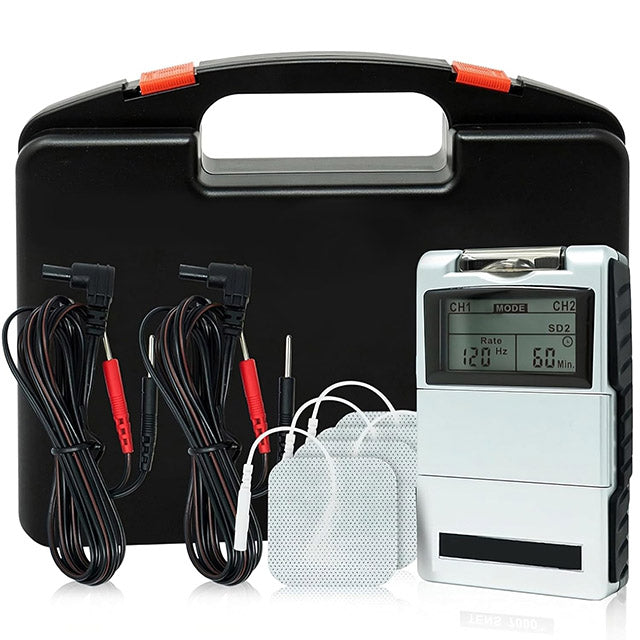 Livré avec tout ce dont vous avez besoin : appareil, électrodes réutilisables, câbles, pile et étui. Vous êtes prêt à profiter d'un soulagement immédiat, dès l'ouverture de la boîte.