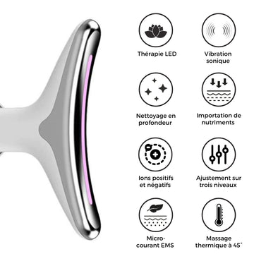 Ce masseur du visage va bien au-delà d’un simple masseur facial. Il s'agit d'un dispositif de luminothérapie qui propose une approche novatrice pour raviver l’éclat et la jeunesse de votre visage. Voici les nombreux bienfaits qu'il procure.