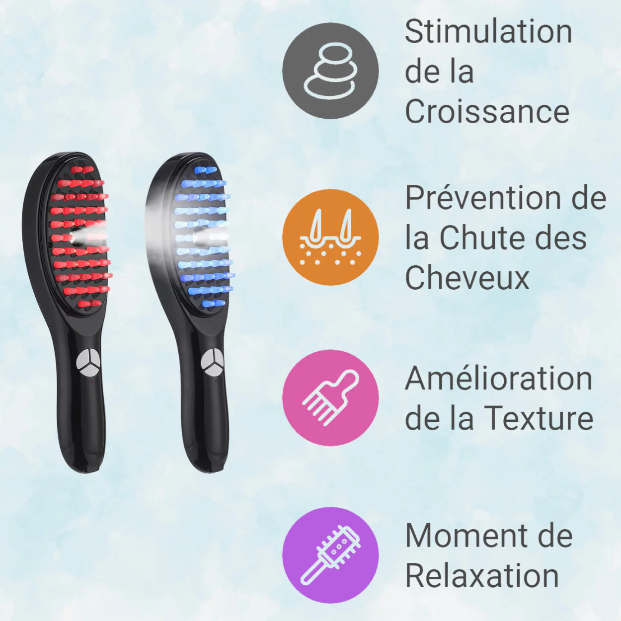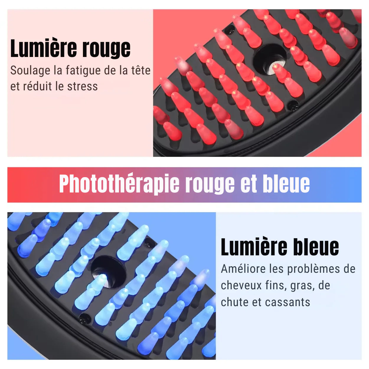 Soin Ultra Complet : Massage, lumière, et soins nourrissants en une seule solution ! Ce peigne multifonctionel améliore la santé de vos cheveux de l'intérieur tout en apaisant votre cuir chevelu.