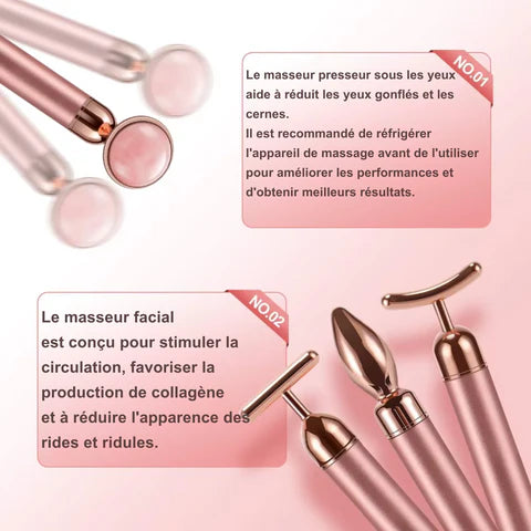 - Quartz rose ovale et circulaire : Apporte relaxation, réduit les poches et favorise une meilleure absorption des soins.